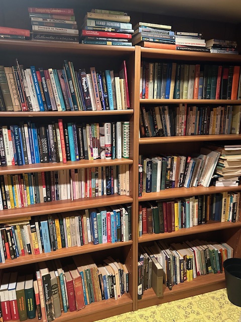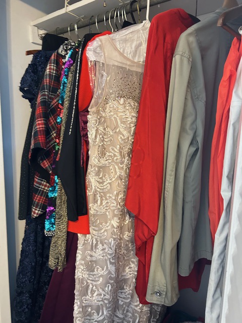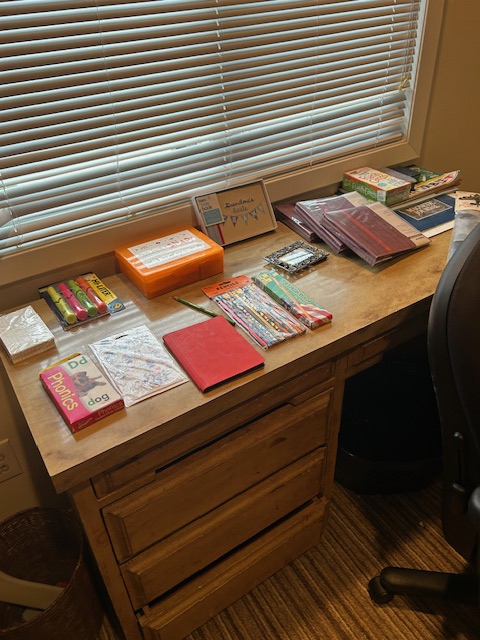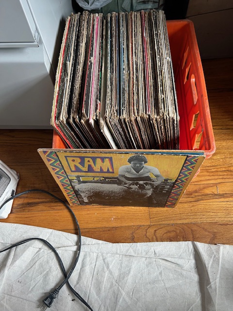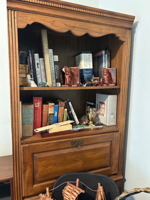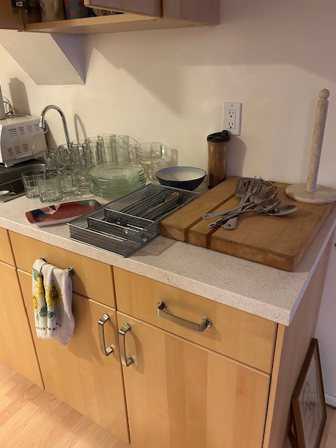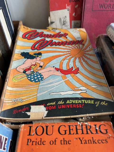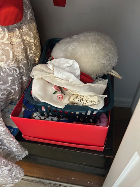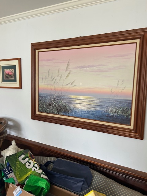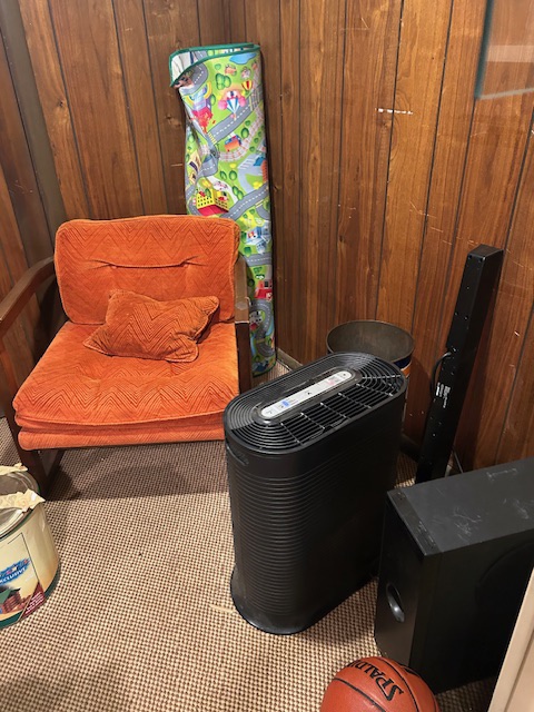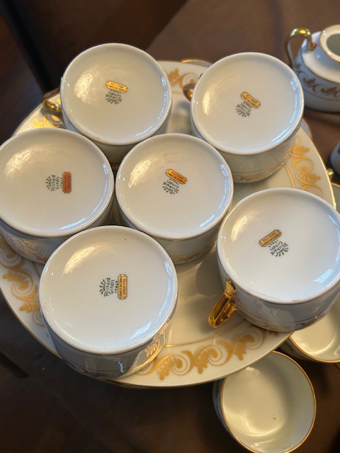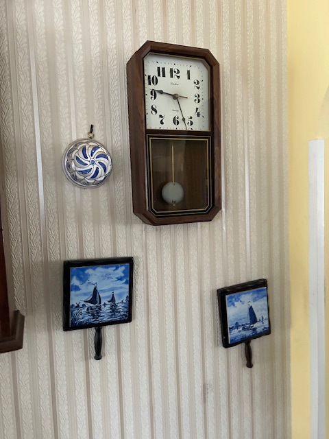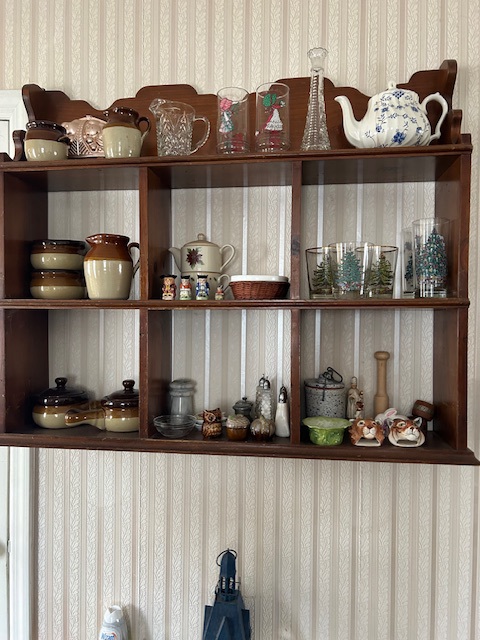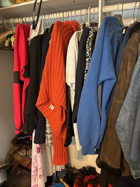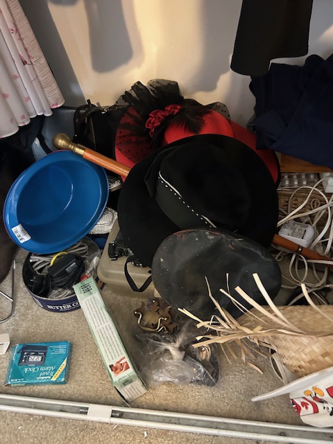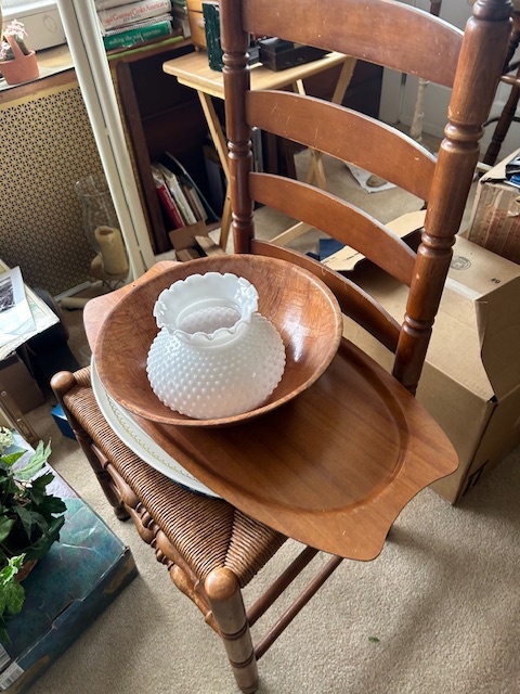 Bauman style chevron patterned velvet sofa & loveseat, shag rug, modern Tronchi glass tube chandelier, mica dinette with 6 upholstered Breuer style chairs, pair of chrome & glass etageres, chrome and white glass globe atomic style fixture, brown velvet chrome plated dining room chairs set of 6, orange upholstered side chair, coffee table, upright piano, desks, dressers, grey mica bedroom furniture, geometric mirror, bags, costume jewelry (not pictured), set of Ginori china, bric-a-brac, kids toys, records, some sports, loads of books, kitware, outdoor table with 6 chairs and umbrella & more