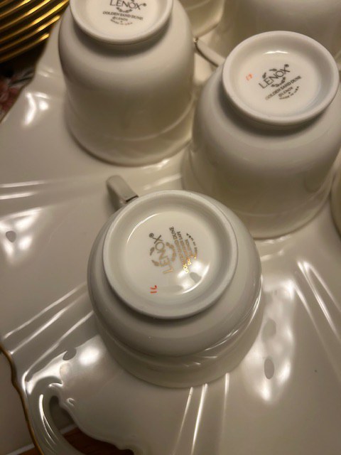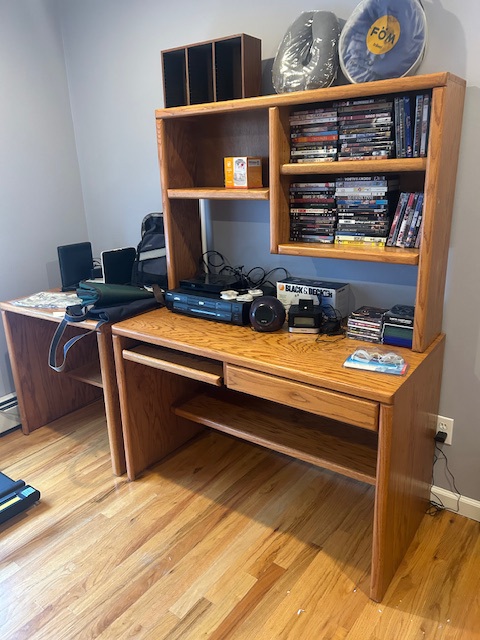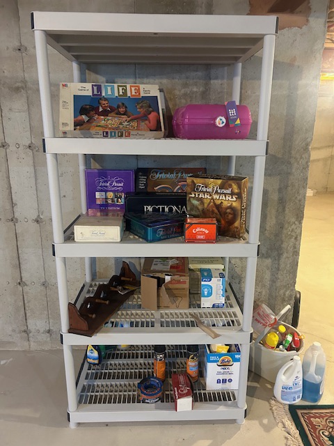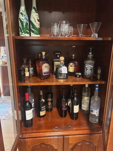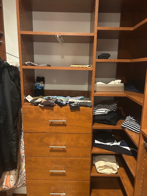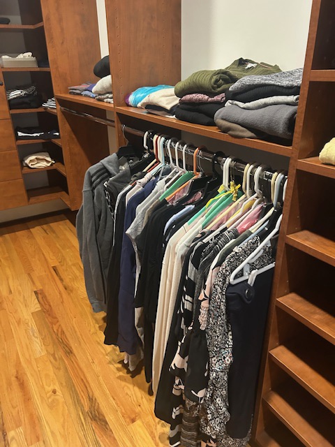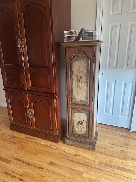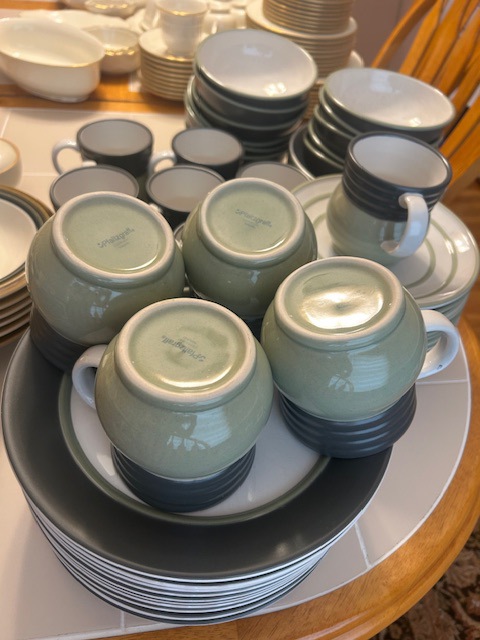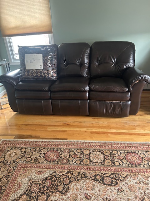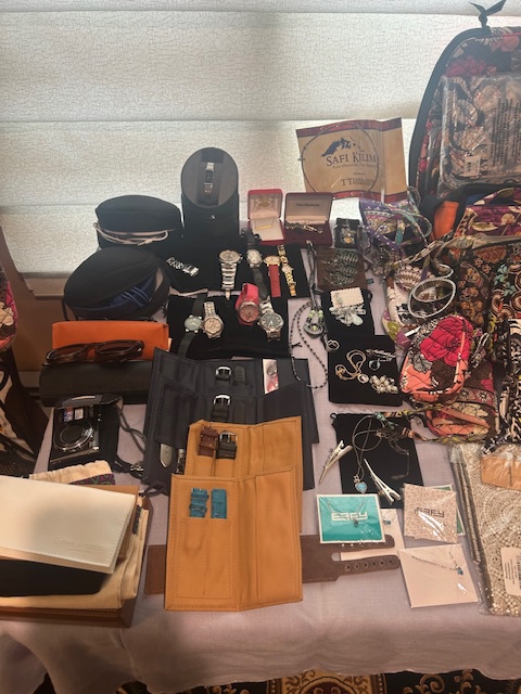 Beautiful dining room table, 6 chairs and matching china closet, tile top kitchen table & chairs, 6 drawer chest of drawers, sofa, armoire, leather reclining sofa with matching chair, 5 piece master bedroom set, white washed 4 poster bed with matching armoire, coffee table, mirrored wardrobe, twin bed, computer desk, PS4, PS3, WII and lots video games, costume jewelry, watches, George Jensen sterling Harlequin forks and spoons, men's clothing, belts, ties, loaded with vintage Coach bags, set of Lenox "Sand Dune" china, crystal, prints, rugs, kitware, bar needs, loads of CD's and DVD's, bedding, golf clubs, games, cordless blower, garden tools and more!